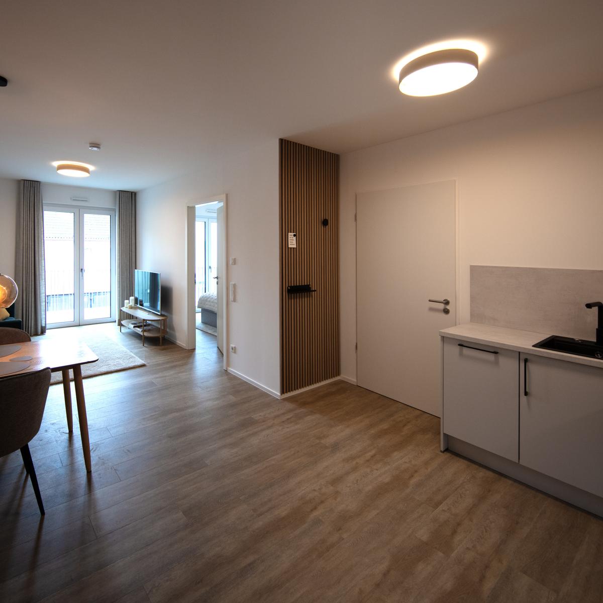 Köster realisierte innerhalb dieses Projekts auf einer Bruttogrundfläche von ca. 5.000 m² 44 barrierefreie Wohnungen sowie einige Geschäftseinheiten über drei Etagen hinweg. Die abgerundeten Gebäudeecken und die gebänderten Putzfassaden stellen Besonderheiten des Projekts dar. Durch den Einsatz von Betonfertigteilen wurde der Baufortschritt beschleunigt und das Projekt konnte drei Monate vor dem geplanten Termin übergeben werden.