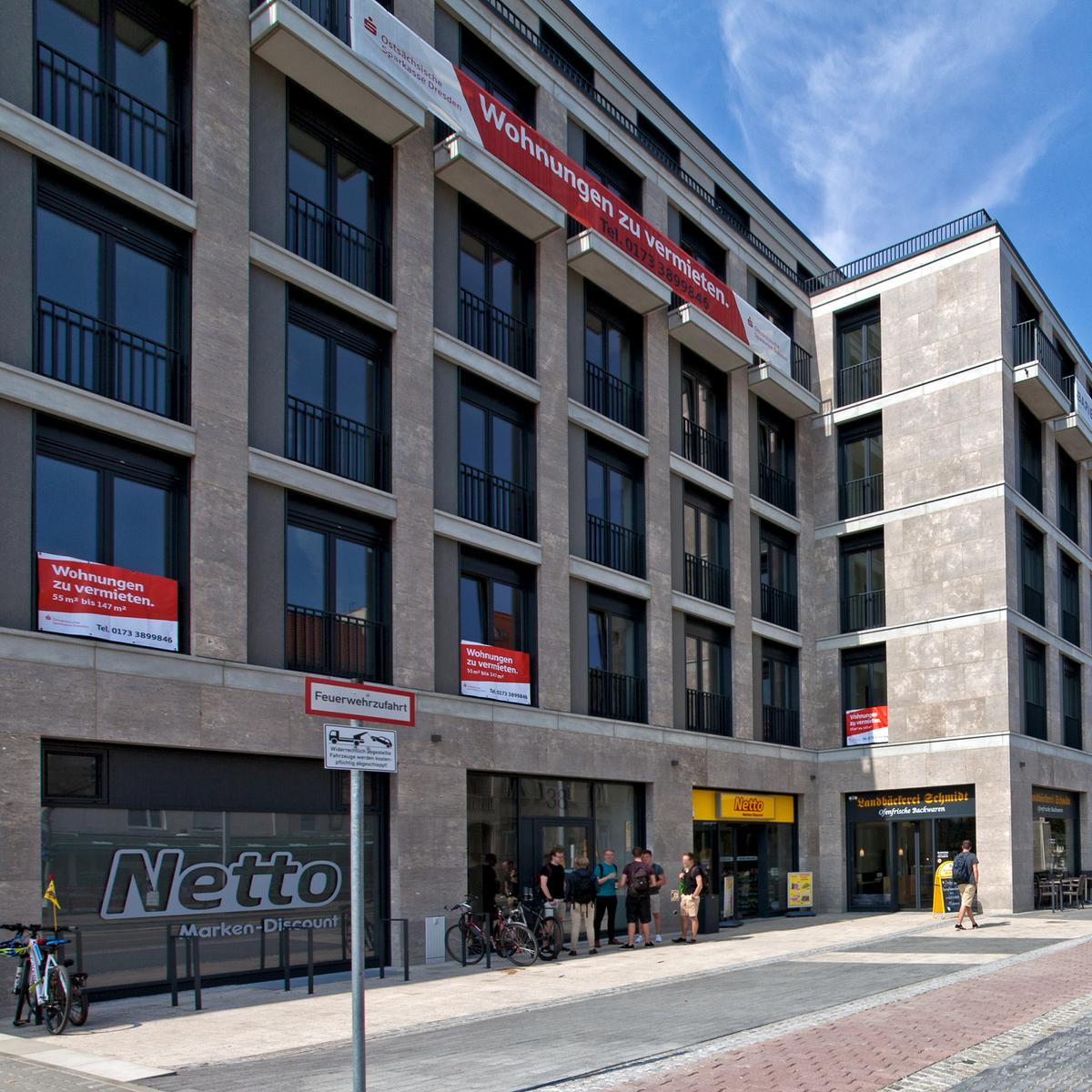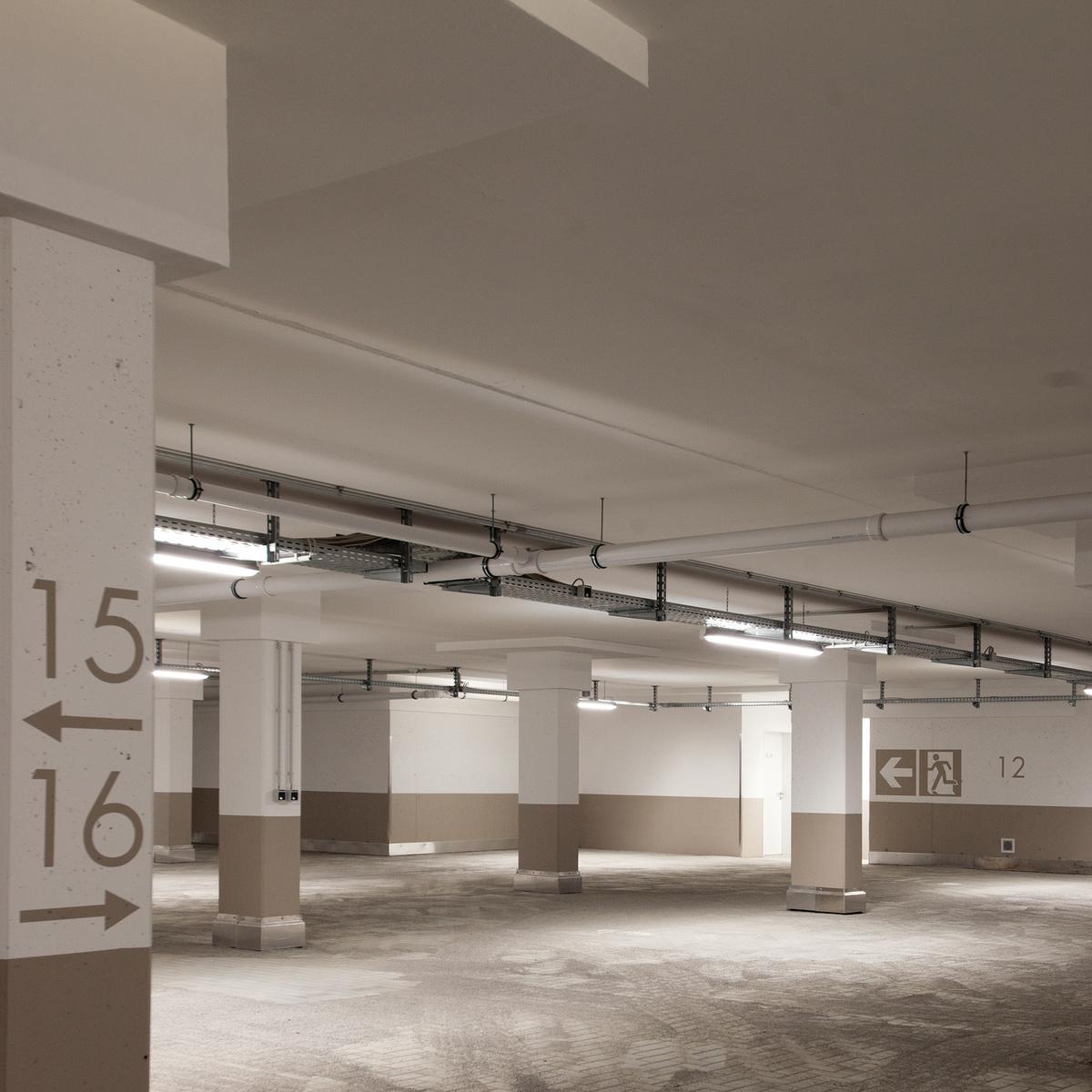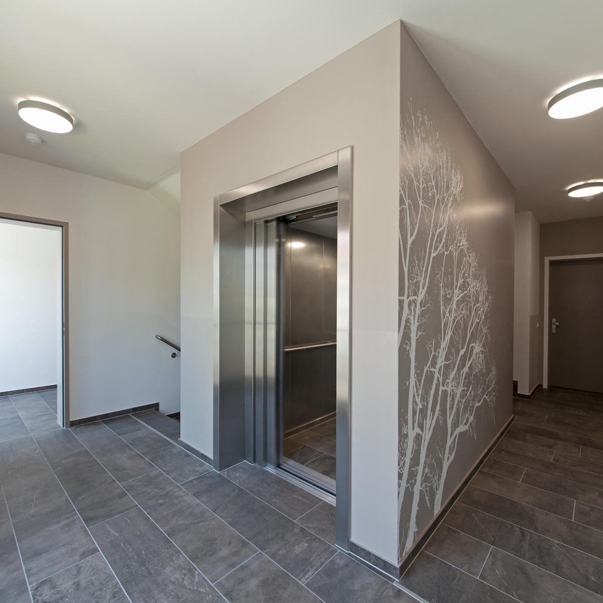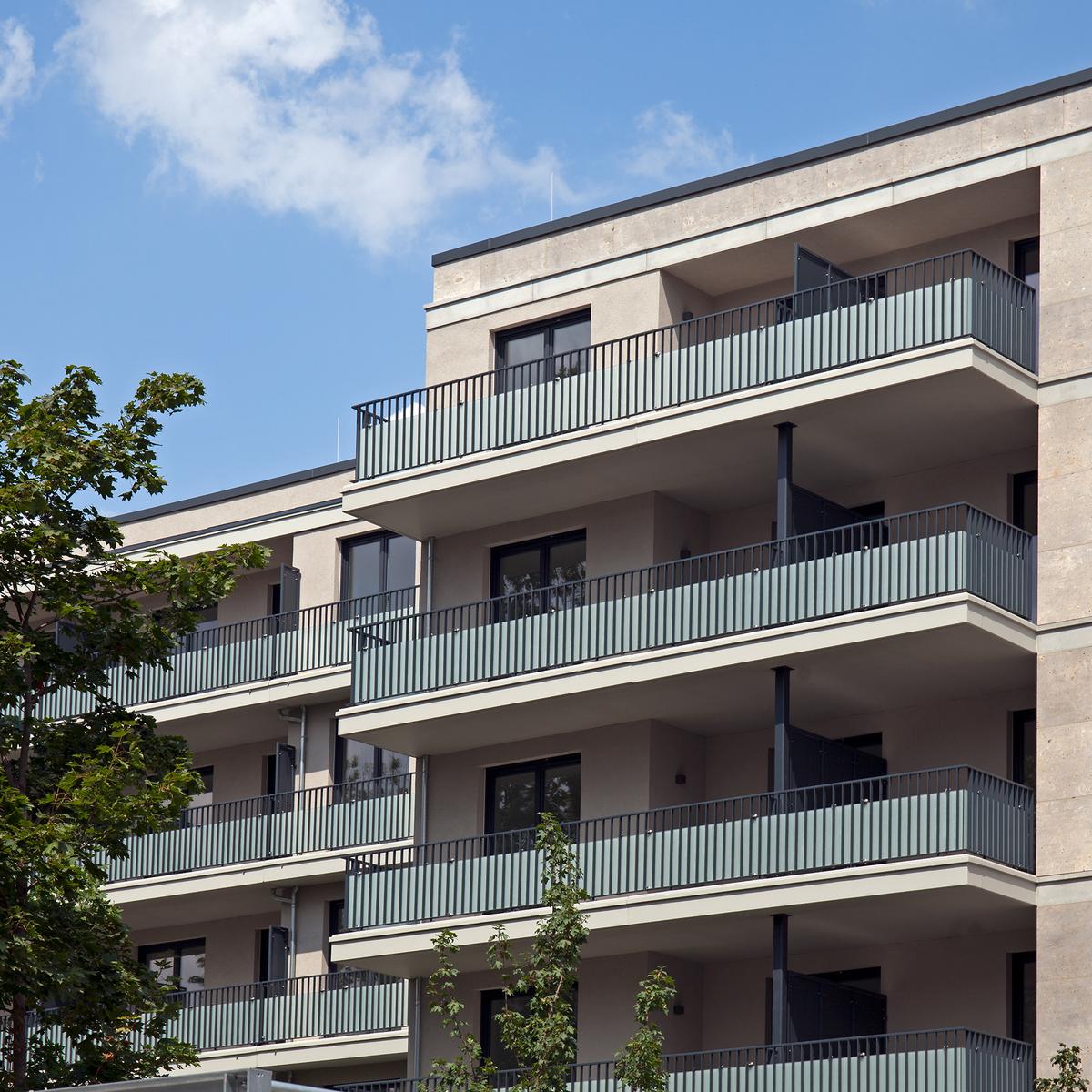 Schlüsselfertiger Neubau eines Wohnhauses bestehend aus 38 Wohnungen in 5 Etagen sowie einer Tiefgarage mit 46 Stellplätzen. Hinter der hochwertigen, hinterlüfteten, rahmenlosen Natursteinfassade verbirgt sich eine besonders hochwertige Ausstattung. Bereits in der Planungsphase wurde diese sehr detailliert bemustert und mit diversen Leitfabrikaten hinterlegt.