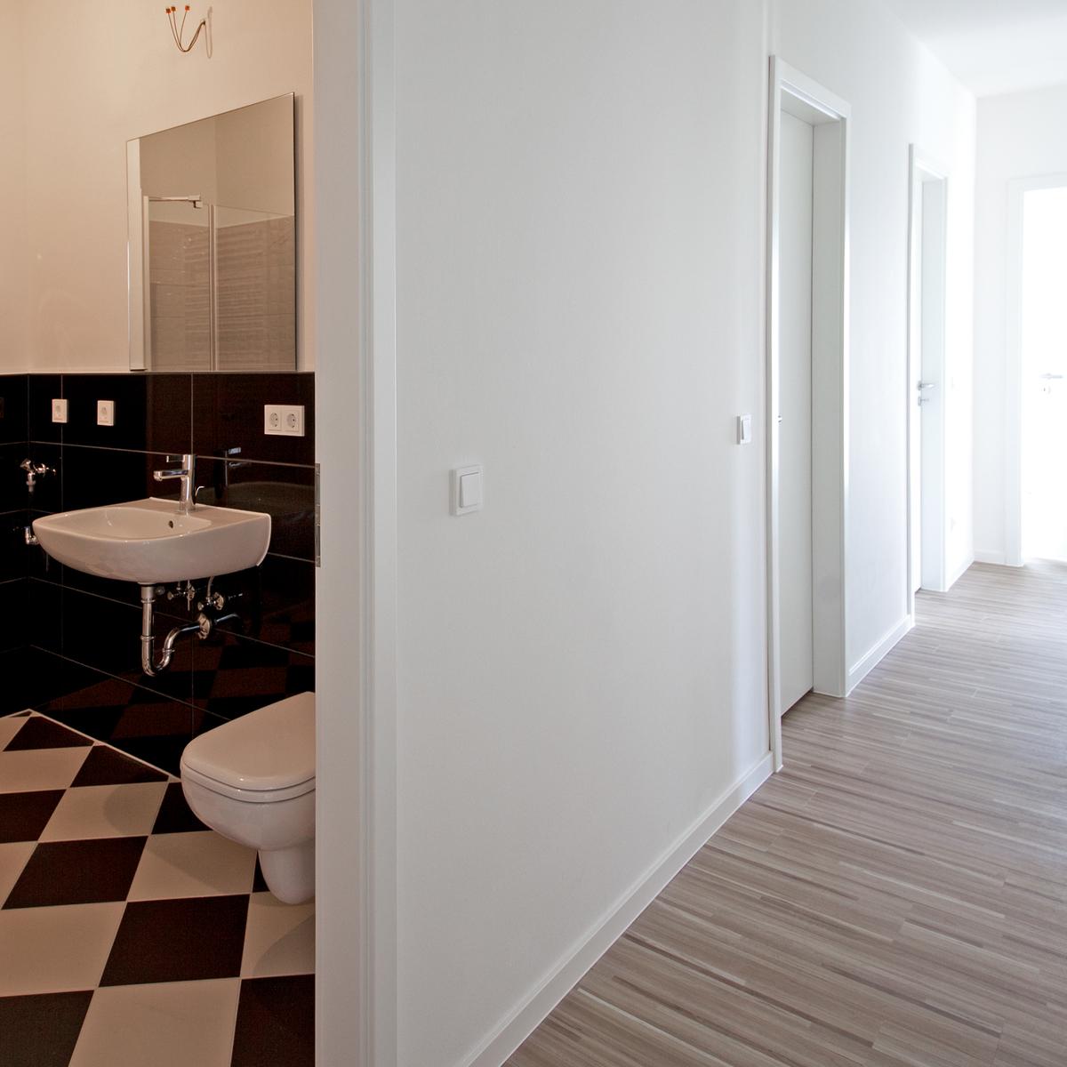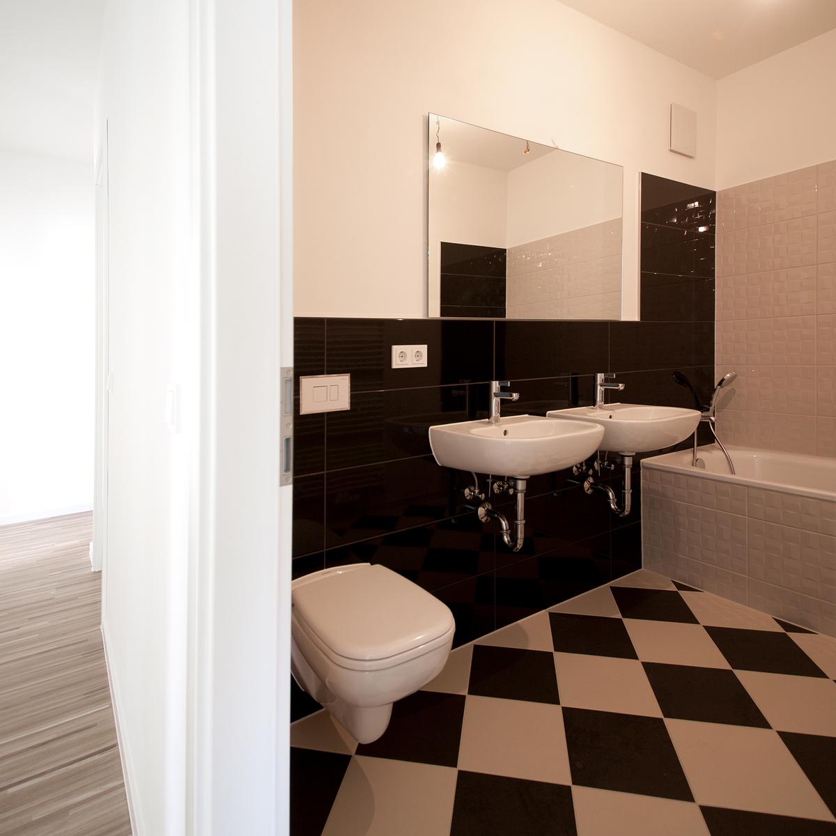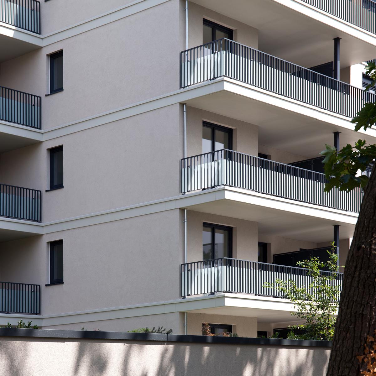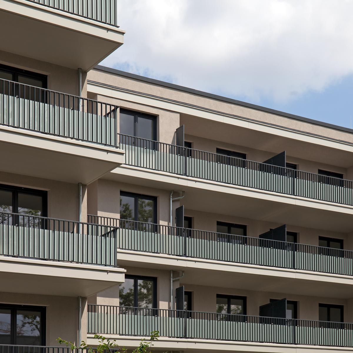 Schlüsselfertiger Neubau eines Wohnhauses bestehend aus 38 Wohnungen in 5 Etagen sowie einer Tiefgarage mit 46 Stellplätzen. Hinter der hochwertigen, hinterlüfteten, rahmenlosen Natursteinfassade verbirgt sich eine besonders hochwertige Ausstattung. Bereits in der Planungsphase wurde diese sehr detailliert bemustert und mit diversen Leitfabrikaten hinterlegt.