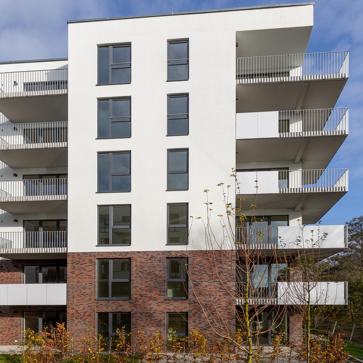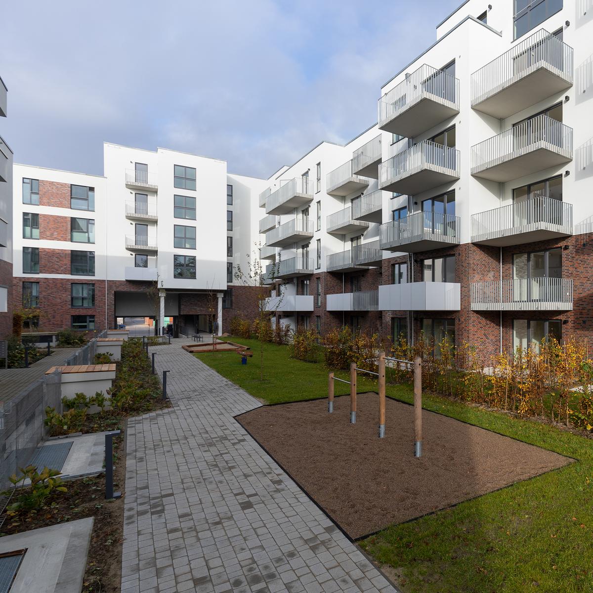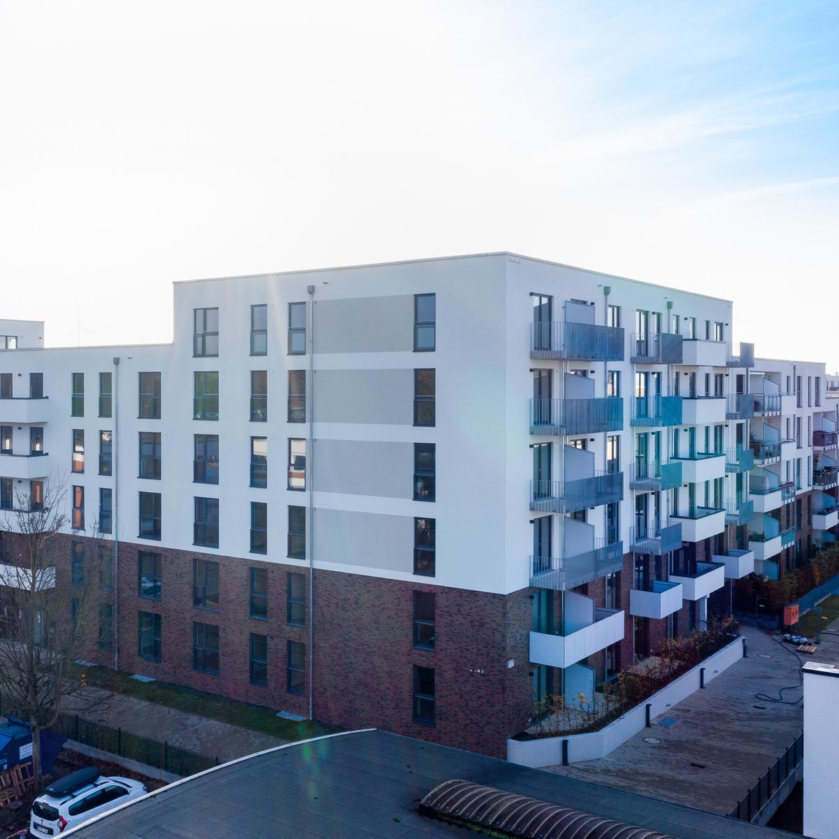 Für die Wohnanlage „Glasbläserhöfe“ in Hamburg-Bergedorf errichtete das Köster-Kompetenz-Center Wohnungsbau Hamburg 53 geförderte und 28 frei finanzierte Mietwohnungen im Auftrag der Wohnkompanie Nord. Der Kunde konnte insbesondere durch ein strukturiertes Angebot mit ausgewiesenen Nebenangeboten zu maßgeschneiderten Umsetzungsvarianten überzeugt werden, in dem die individuellen Anforderungen des Käufers von Beginn an berücksichtigt wurden. Dank der etablierten Abläufe des Köster-Prozess-Systems konnten Verzögerungen durch unerwartete Bodenfunde wieder ausgeglichen werden.