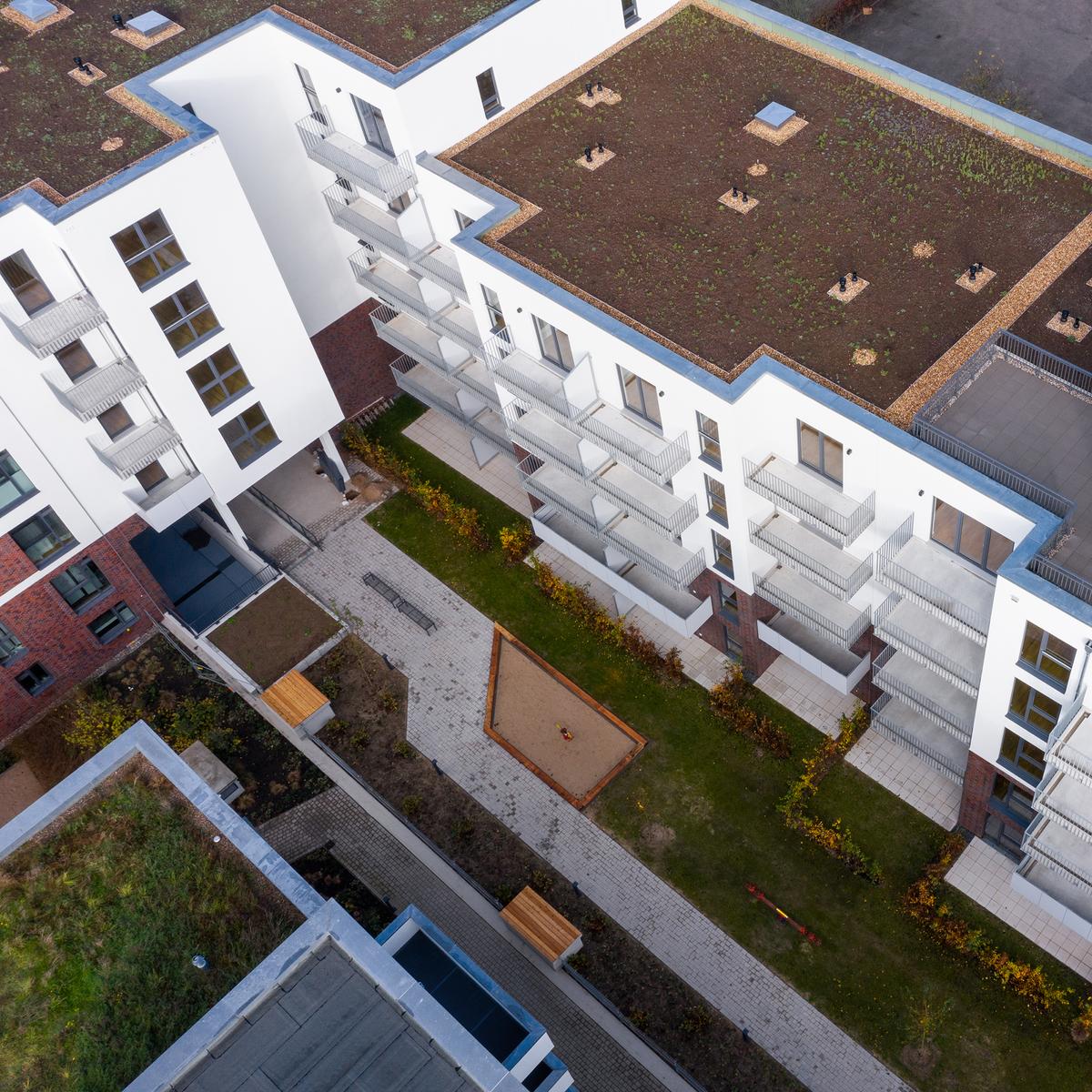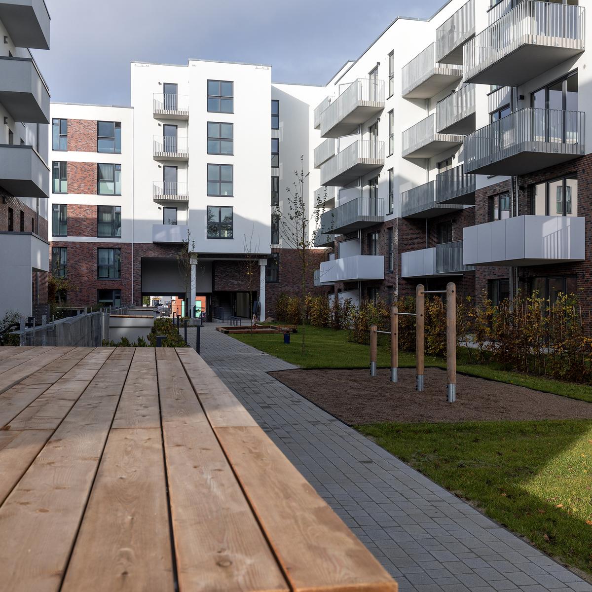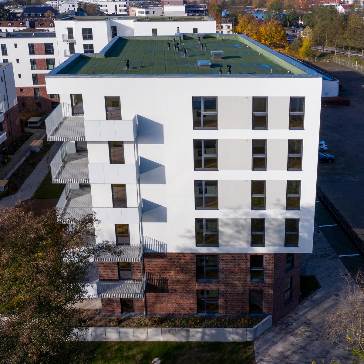 Für die Wohnanlage „Glasbläserhöfe“ in Hamburg-Bergedorf errichtete das Köster-Kompetenz-Center Wohnungsbau Hamburg 53 geförderte und 28 frei finanzierte Mietwohnungen im Auftrag der Wohnkompanie Nord. Der Kunde konnte insbesondere durch ein strukturiertes Angebot mit ausgewiesenen Nebenangeboten zu maßgeschneiderten Umsetzungsvarianten überzeugt werden, in dem die individuellen Anforderungen des Käufers von Beginn an berücksichtigt wurden. Dank der etablierten Abläufe des Köster-Prozess-Systems konnten Verzögerungen durch unerwartete Bodenfunde wieder ausgeglichen werden.