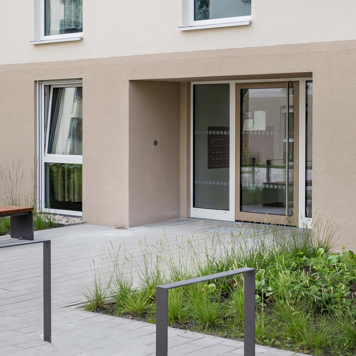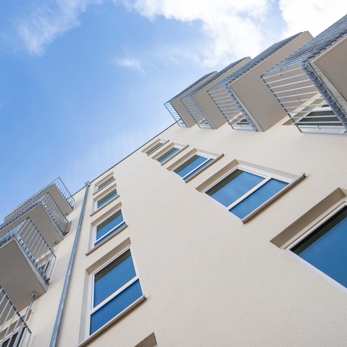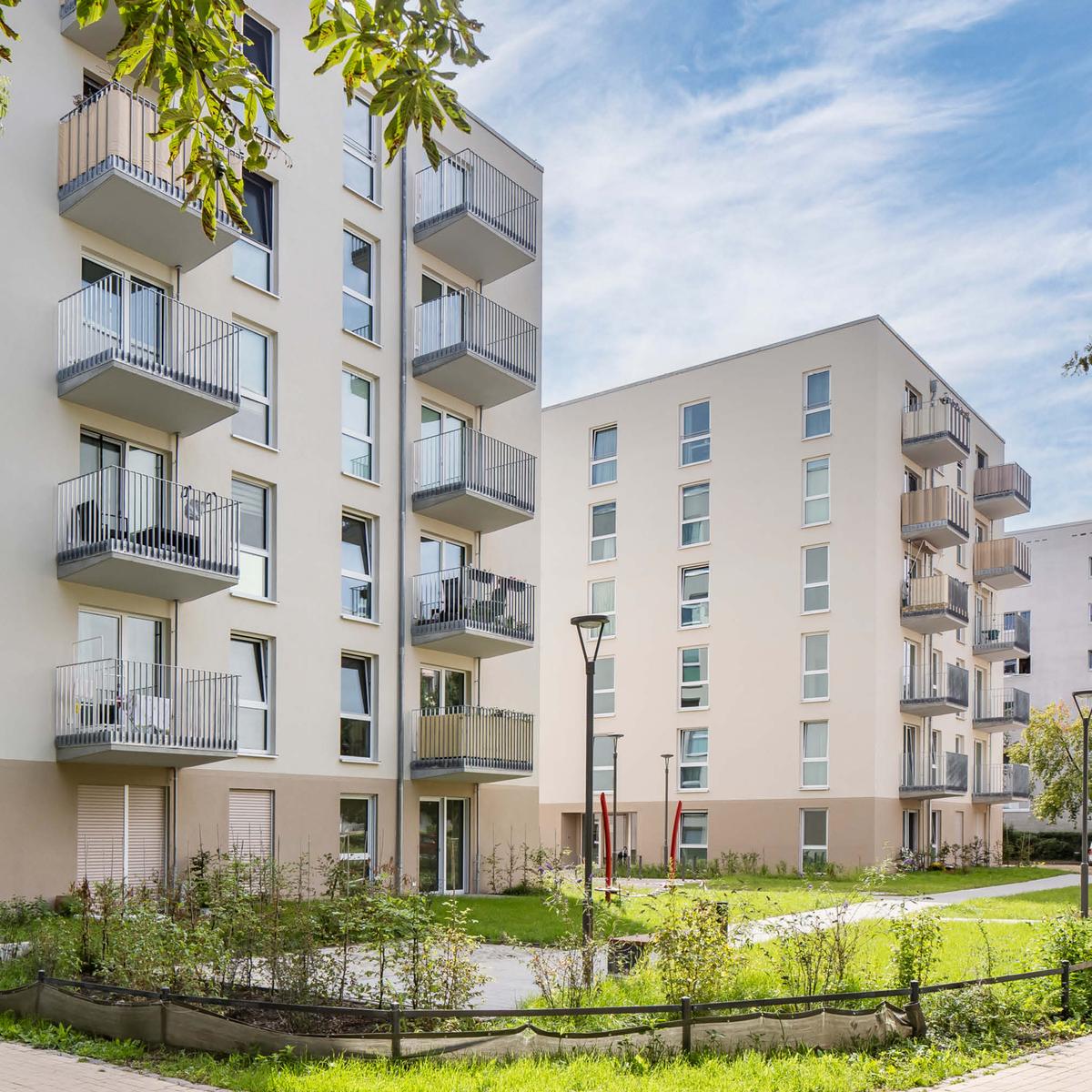 In der Woldegker Straße in Berlin wurden zwei unterkellerte Wohngebäude mit insgesamt 48 barrierefreien Wohneinheiten im Effizienzhausstandard GEG EH 55 errichtet. Die versetzte Anordnung der Baukörper sowie die Balkongestaltung orientieren sich an der bestehenden Bebauung. Durch den Einsatz seriell vorgefertigter Bauteile und einer BIM-gestützten Planung konnte eine wirtschaftliche und zeiteffiziente Bauweise umgesetzt werden.