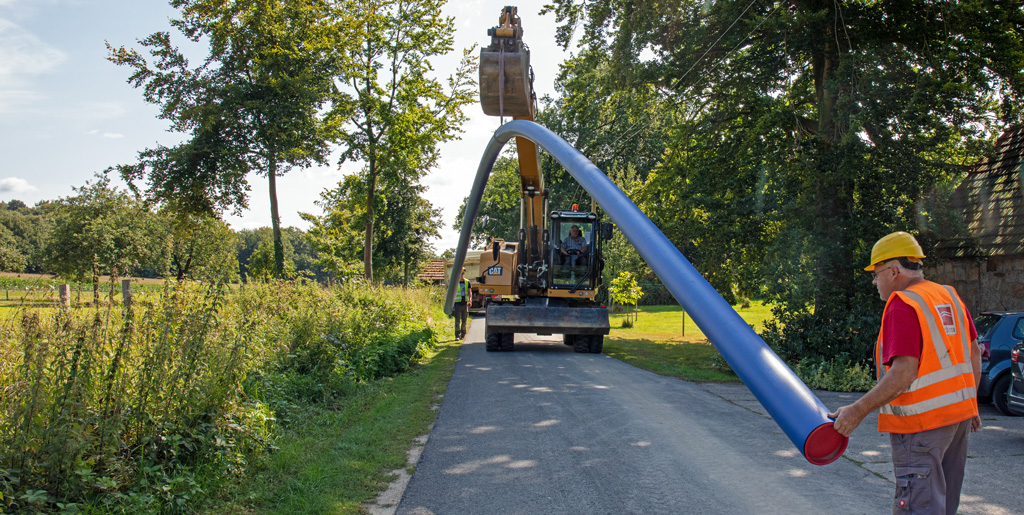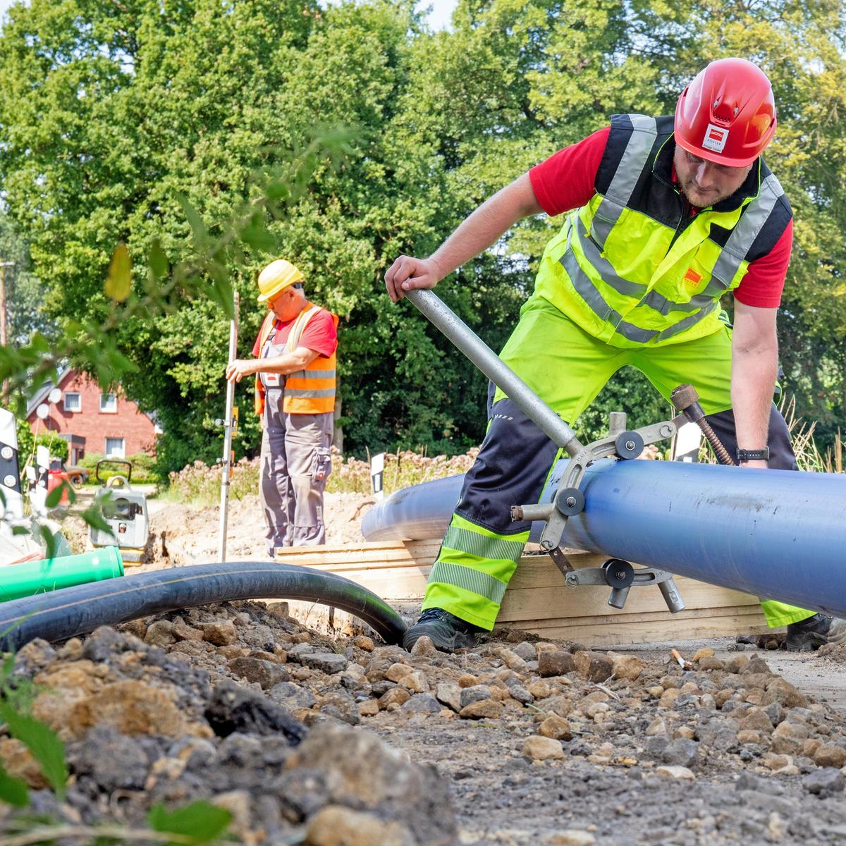 In den heißen Sommern 2018 und 2019 kam es bei Spitzenabnahmen aus dem Rohrleitungsnetz in Hörstel-Riesenbeck bei der Befüllung des Wasserhochbehälters zu Engpässen. Die Kapazität der bisherigen Wasserleitung reichte nicht aus, um den Wasserhochbehälter nachts soweit aufzufüllen, wie es der tägliche Verbrauch erforderte. Der Wasserversorgungsverband Tecklenburger Land (WTL) beauftragte daher den Bereich Energieinfrastruktur der Köster GmbH eine neue, 2.900 m lange Leitung zu verlegen. Diese wurde für etwa 200 m im HDD-Verfahren vorgetrieben. Bei den Arbeiten musste das Team vor allem auf vorhandene Leitungen unter der engen Trasse achten. Für die Trinkwassersicherheit wurden speziell ausgebildete Schweißer eingesetzt.