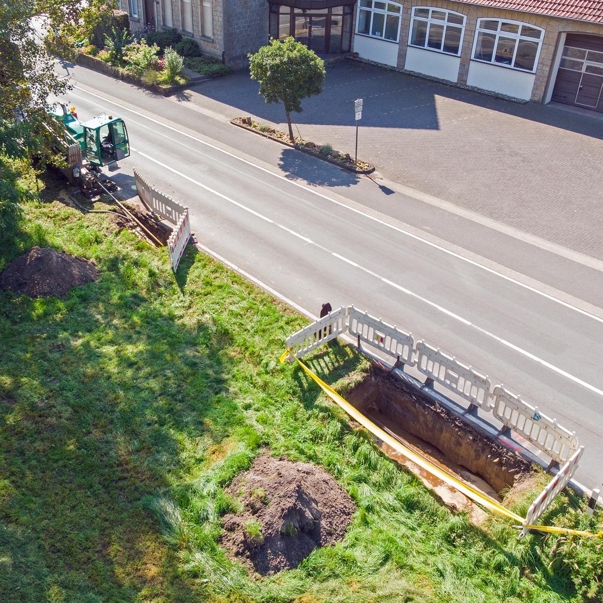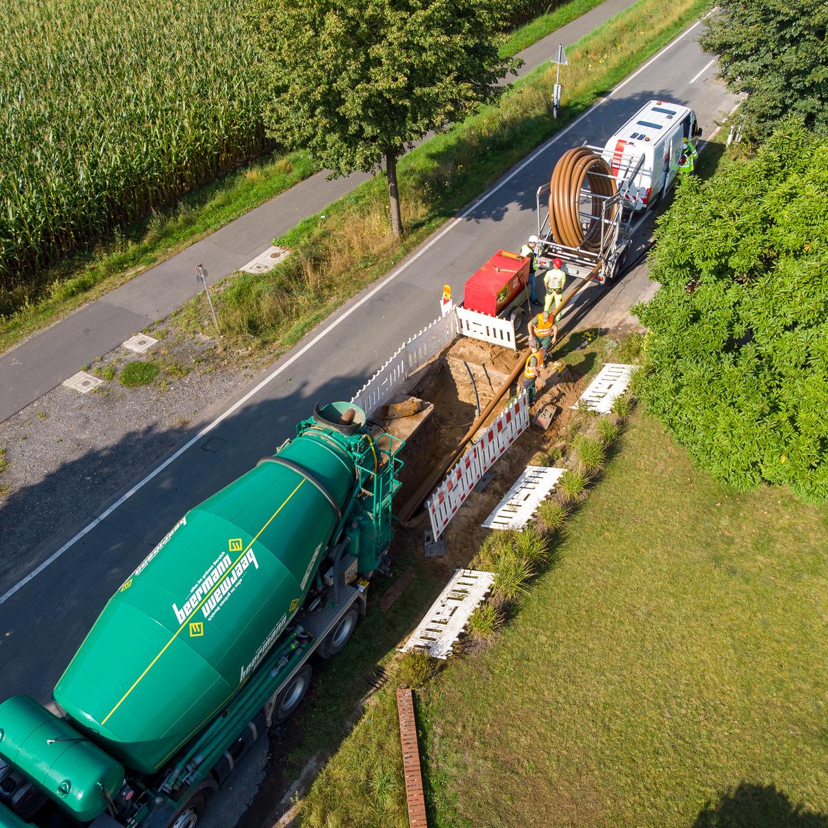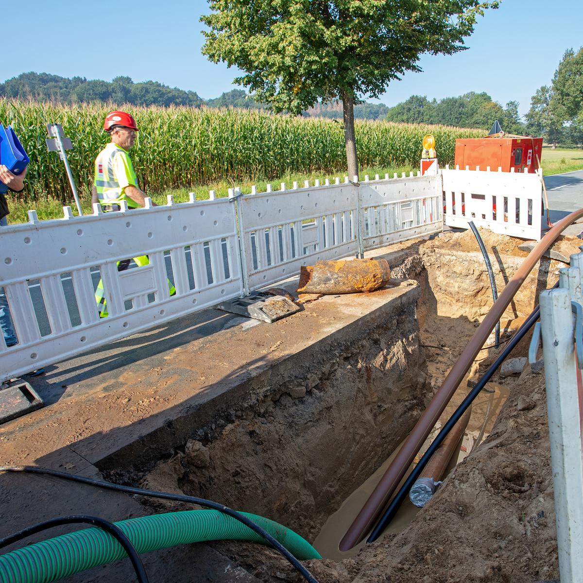 Der Neubau der rund 700 m langen Trinkwassertransportleitung DN 600 durch Bereich Energieinfrastruktur ist ein Baustein in der Neustrukturierung der Trinkwasserversorgung im Tecklenburger Land. Hier betreibt der WTL - Wasserversorgungsverbands Tecklenburger Land zwei Wasserwerke, die ab 2022 parallel laufen sollen. Mit diesen Maßnahmen wird zum einen die Wasserqualität verbessert, auf der anderen Seite können dann beide Wasserwerke mit den gleichen Druckstufen betrieben werden. Dies erhöht die Versorgungssicherheit im Gebiet deutlich, da sich die Werke bei Bedarf gegenseitig ersetzen können. Für besonders hohe Sicherheitsstandards im Industriegebiet wurden die duktilen Gussrohre in eine steinfreie Sandbettung verlegt.