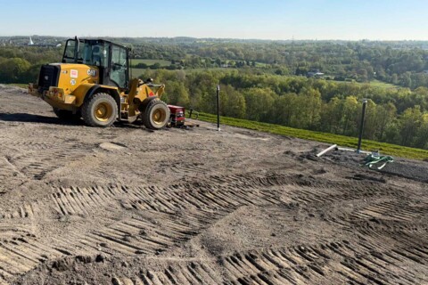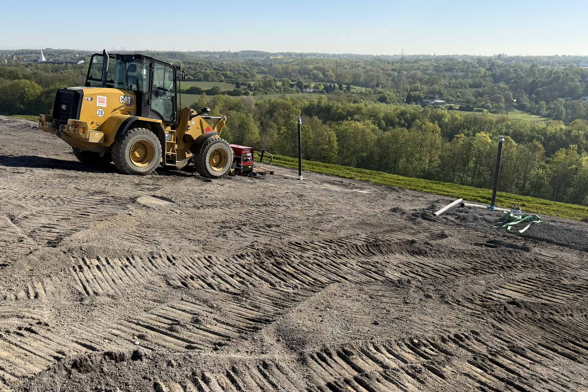 Auch der maschinelle Einbau der Materialien erfordert höchste Präzision: Die empfindlichen Tondichtungsbahnen, und geotextilen Bahnen dürfen nicht direkt befahren werden und müssen sukzessive sowie absolut gleichmäßig mit Rekultivierungsboden belegt werden, um Wellenbildungen und Schäden an der Abdichtung zu verhindern.
