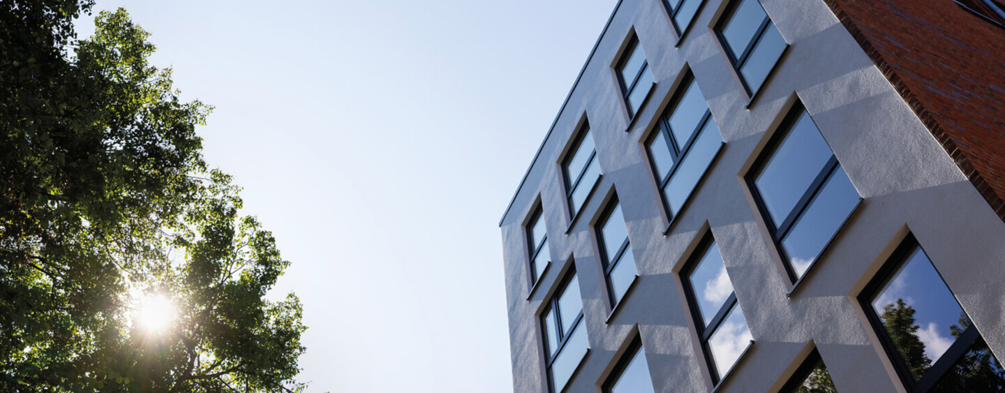 Bei der Optik wurde auf eine gute Balance zwischen Kosteneffizienz und Design geachtet. So ist die Fassade zur Straßenseite beispielsweise mit Klinkern gestaltet. Die Fassade zum Innenhof ist kosteneffizient mit verputztem Wärmedämmverbundsystem (WDVS) verkleidet.